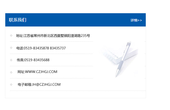 地址:常州市新北區(qū)友邦商務(wù)大廈1幢16、17層  電話:0519-85101652  傳真:0519-85112595  郵編:213022  網(wǎng)址:www.cz-jiayue_cn.wuyoulvzheng.com  郵箱:xiajifengaa@163.com